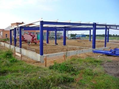 Weitere Aufstellung des Stahlgerüstes