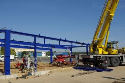 Die letzten Arbeiten am Stahlgerüst der Halle